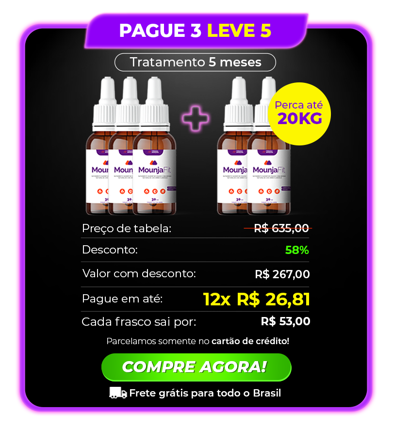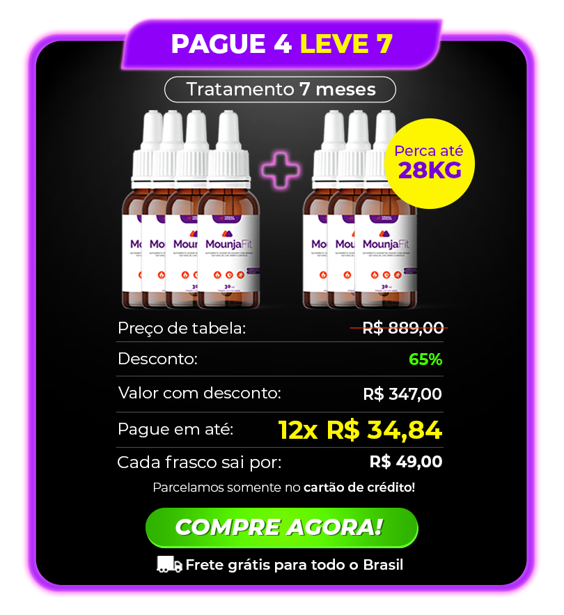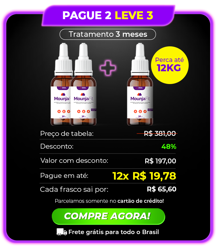 Indica-se o uso do MOUNJAFIT uma vez ao dia, você precisa tomar somente 12 gotas por dia antes do café da manhã ou em jejum. Lembrando que os resultados podem variar por pessoa.